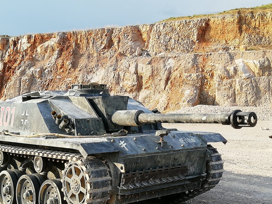 Gli Sturmgeschütz (abbreviato in StuG ) che significa " cannone d'assalto " erano una serie di veicoli corazzati utilizzati sia dalla Wehrmacht tedesca che dalle formazioni corazzate Waffen-SS durante la seconda guerra mondiale che consisteva principalmente nello StuG III e StuG IV . Il più comune dei due, lo StuG III, è stato costruito sul telaio del collaudato Panzer III . Lo StuG III fu inizialmente designato "StuG" ma con la creazione dello StuG IV fu ribattezzato "StuG III" per distinguere i due.